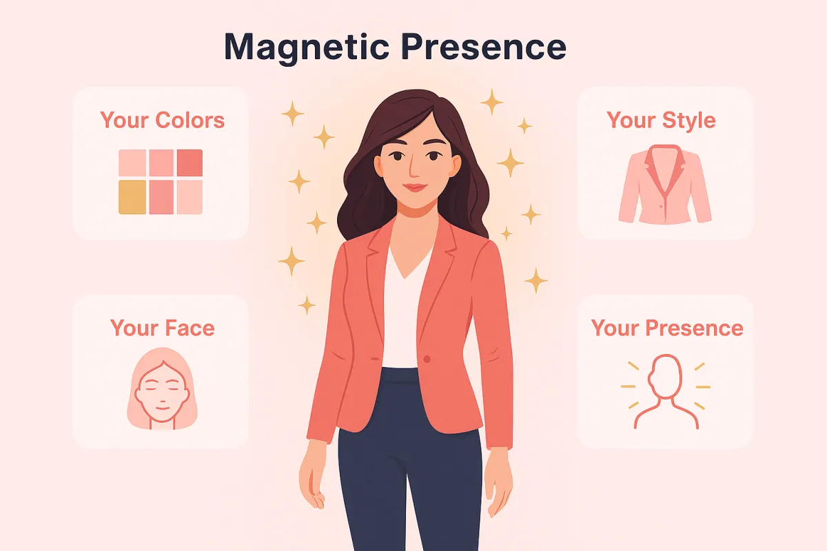 Your Colors - Most successful women are wearing colors that literally drain their presence. Strategic color analysis reveals the specific tones that make YOUR skin glow, YOUR eyes magnetic, YOUR presence impossible to ignore.